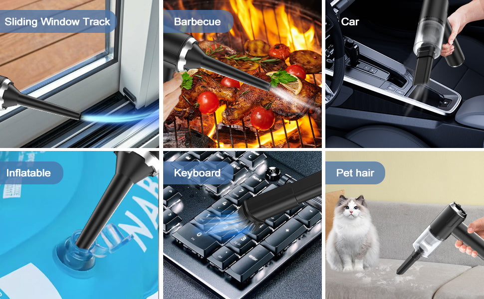3 in 1 Portable Car Vacuum Cleaner with Blower | USB Rechargeable Wireless Handheld Car Vacuum Cleaner Traveling, Camping Reusable,Portable,RechargeableDUST SOFTLY CLEANYETI car vacuum cleaner comes with nozzles with 3 different functions. The suction nozzle is suitable for dust cleaning in the crevices of car doors and seats; the brush has the dual functions of vacuuming and wiping, which is suitable for dust cleaning on the surface of sofa footrests carpets and keyboards; and the blowing air can clean the fine dust in all kinds of crevices and can be wiped and blown with the brush.120W MotorTackles wet and dry messes with a suction power of 9000PA.Our car vacuum is cordless, rechargeable, portable, and multifunctional.Easy to clean dust, crumbs, debris, and hairs in your homeCaroffice.Taking a handheld vacuum cordless or giving it as a gift to family and friends is a smart choice!120W high-power handheld cordless vacuum cleaner has a strong suction power of up to 6000PA.Our small vacuum cleaner has a built-in 4000mAh lithium-ion battery(2 x 2000mAh battery packs) which can bring more suction power and is adopted.The cordless handheld vacuum design allows you to move freely while cleaning your stairs, kitchen, car, or hard-to-reach corners.You can place this portable vacuum cleaner in any storage space.Ultra-LightweightAt just 400g, easily carry and maneuver it anywhere.LED LightsIlluminate dark corners for thorough cleaning.Deep Cleaning EverytimeReaches tough areas with ease.Eco-FriendlyFeatures a washable filter for repeated use and minimal waste.Simple to UseJust charge, switch on, and go! The cord-free design means you can clean without boundaries.Why Vacuumly is a Must-HaveNot just a vacuum but a game-changer for easy and effective cleaning. Perfect for those who value practicality and efficiency in their cleaning tools.What Comes in the Box?Vacuumly Handheld VacuumFour Cleaning AttachmentsUSB Charging CableUser ManualGet Your Vacuumly Now!Join thousands who have transformed their cleaning routine. Grab your Vacuumly today and experience unmatched cleaning efficiency!3 in 1 Portable Car Vacuum Cleaner with Blower | USB Rechargeable Wireless Handheld Car Vacuum Cleaner Traveling, Camping Reusable,Portable,Rechargeable DUST SOFTLY CLEAN YETI car vacuum cleaner comes with nozzles with 3 different functions. The suction nozzle is suitable for dust cleaning in the crevices of car doors3 in 1 Portable Car Vacuum Cleaner with Blower | USB Rechargeable Wireless Handheld Car Vacuum Cleaner Traveling, Camping Reusable,Portable,Rechargeable DUST SOFTLY CLEAN YETI car vacuum cleaner comes with nozzles with 3 different functions. The suction nozzle is suitable for dust cleaning in the crevices of car doors
