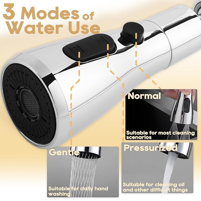 Kitchen Faucet 3-Function Pull Down Sink Sprayer Attachment for Faucet Pull Out Spray Head Head Big Angle Rotatable Anti -Splash Faucet for Kitchen Rotating Sink Faucet Aerator (1 Pc) Description- 3 FUNCTIONS Kitchen faucet extender provides 3 functions; gentle water flow for daily use; medium pressure water flow forKitchen Faucet 3-Function Pull Down Sink Sprayer Attachment for Faucet Pull Out Spray Head Head Big Angle Rotatable Anti -Splash Faucet for Kitchen Rotating Sink Faucet Aerator (1 Pc) Description- 3 FUNCTIONS Kitchen faucet extender provides 3 functions; gentle water flow for daily use; medium pressure water flow for