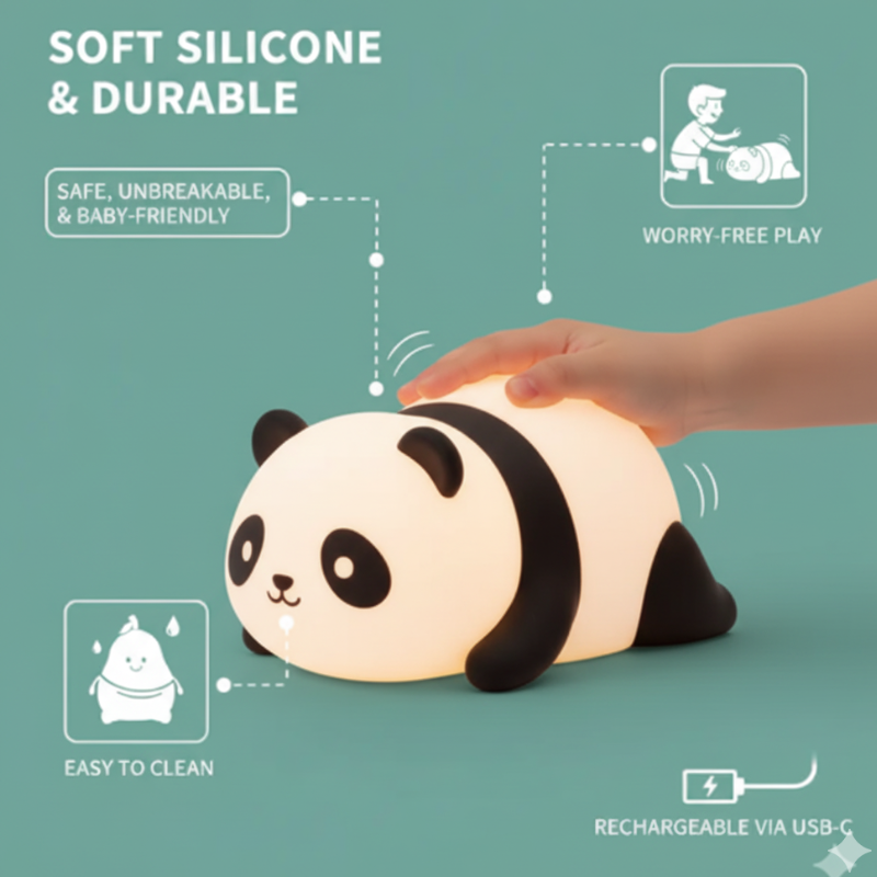 Add a touch of playful elegance with the Moonkin Panda Lamp. This unique, soft-touch silicone light provides a warm, ambient glow, making it a perfect decor piece for any space.Add a touch of playful elegance with the Moonkin Panda Lamp. This unique, soft-touch silicone light provides a warm, ambient glow, making it a perfect decor piece for any space.